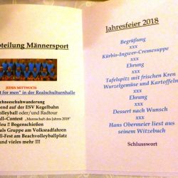 Fotos Eishockey München, am 01.03.2026 12 Bilder Winterwanderung zur Loderhart, am 07.02.2026 15 Bilder Jahresabschlussfeier 2025 36 Bilder Besuch des Steinzeitmuseums Kastenhof, 08.11.2025 15 Bilder Fahrradtour nach Aldersbach 2025 6 Bilder Wanderung zur Kötztinger Hütte, 23.09.2025 16 Bilder Allianz-Arena, am 06.09.2025 11 Bilder Beachvolleyball-Contest 2025 37 Bilder 2025 Sommerfest der Männersportler 26 Bilder Volksfestauszug 2025 8 Bilder Vatertag 2025 7 Bilder Kegeln beim Burgwirt Natternberg 3 Bilder Jahreshauptversammlung am 12.03.2025 5 Bilder Winterwanderung zur Loderhart 9 Bilder Jahresabschlussfeier 2024 29 Bilder Herbstwanderung in Schareben, am 17.10.2024 36 Bilder Fit for men, am 09.10.2024 12 Bilder Radtour zum Bräustüberl Aldersbach 4 Bilder Besuch NAWAREUM und TUM Campus Straubing 20 Bilder Beachvolleyball-Contest 2024 97 Bilder Grillfest 2024 26 Bilder Volksfestauszug 2024 9 Bilder Vatertag 2024 10 Bilder Winterwanderung zur Berghütte Loderhart 15 Bilder Fit for men 2024 23 Bilder Basketball FC Bayern 11 Bilder Jahresessen, am 02.12.2023 23 Bilder Museumsbesuch in Künzing, am 23.09.2023 4 Bilder Beachvolleyball-Contest 2023 37 Bilder Grillfest 2023 16 Bilder Volksfestauszug, am 07.06.2023 10 Bilder Vatertagsfeier an der Doppelschleuse 12 Bilder 2023 Kegelabend 12 Bilder 2023 Jahreshauptversammlung 8 Bilder 2023 Winterwanderung zur Loderhart 8 Bilder Volleyball 1. Bundesliga der Damen in Straubing, am 14.01.2023 4 Bilder Jahresessen, am 03.12.2022 40 Bilder 2022 Besichtigung Kalk- und Ziegeleimuseum Flintsbach 13 Bilder 2022 Beachvolleyball-Contest 30 Bilder 2022 Grillfest 25 Bilder Vatertag 2022 19 Bilder Schneeschuhwanderung 2022 3 Bilder Radltour nach Aldersbach am 14.09.2021 2 Bilder 2021 Beachvolleyball-Turnier 16 Bilder 2020 Beachvolleyball-Contest 26 Bilder 2020 Winterwanderung zur Loderhart, 25.01.2020 6 Bilder 2019 Jahresessen im Preysinghof, am 30.11.2019 30 Bilder 2019 Brandy' Braugarage 12 Bilder Beachvolleyball-Contest, am 21.08.2019 23 Bilder Grillfest, am 27.07.2019 31 Bilder 19.06.2019 Volksfestauszug 6 Bilder 2019 Vatertag 18 Bilder 2019 Bogenschießen 30 Bilder Fahrt zum Fußballspiel "Jahn Regensburg - MSV Duisburg", am 09.03.2019 5 Bilder 23.01.2019: Versammlung mit Neuwahlen 5 Bilder "Fit-For-Men" 7 Bilder Jahresessen 2018 - am 24.11.2018 im Gasthaus "Fischerstuben" 28 Bilder Herbstwanderung der TSV-Männersportler, am 30.09.2018 27 Bilder Beachvolleyball-Turnier, am 22.08.2018 50 Bilder Grillfest 2018 32 Bilder Bogenschießen, am 07.07.2018 17 Bilder 2018 Vatertag an der Doppelschleuse 14 Bilder Kegelabend der TSV-Männersportler, am 23.03.2018 3 Bilder Bundesliga-Volleyball "Rote Raben Vilsbiburg" 4 Bilder 28.01.2018: Schneeschuhwanderung 4 Bilder Jahresessen, am Samstag, 02.12.2017 23 Bilder Sommerfest, am 29.07.2017 22 Bilder Beach-Volleyball-Turnier 2017 45 Bilder 25.05.2017 - Vatertagsfeier an der Doppelschleuse 38 Bilder 31.03.2017 - Kegelabend der TSV-Männersportler 19 Bilder Schneeschuhwanderung zum Berghaus "Loderhart" 3 Bilder 2016 Silvesterlauf 29 Bilder Jahresessen 2016 23 Bilder 2016 Besichtigung der Molkerei Bechtel 8 Bilder 2016 Wanderung zum Falkenstein 23 Bilder 2016 Grillfest 39 Bilder 2016 Beachvolleyball-Contest 17 Bilder 2016 Kegelabend auf der ESV-Kegelbahn 10 Bilder Aktivitäten 4 Bilder 2015 Silvesterlauf 7 Bilder 2015 Wanderung an der Sagwassersäge 11 Bilder 2015 Sommergrillfest am Beach-Volleyballplatz 19 Bilder 2015-KW-Gedächtnislauf 17 Bilder 2015 Vatertagswanderung zur Doppelschleuse 7 Bilder 2015-Schneeschuhwandern 21 Bilder 2014-Wandern Pröller 12 Bilder